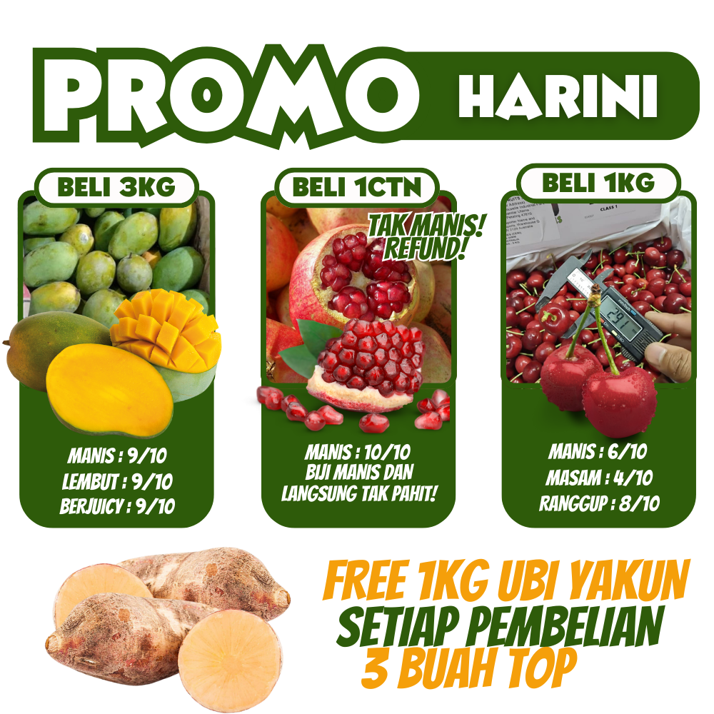 Syabab Fresh amat hargai dan jaga customer. Jika ada buah yang rosak, tidak perlu risau sebab Syabab Fresh akan beri jaminan buah 100% sama ada “hantar baru atau refund duit”Â